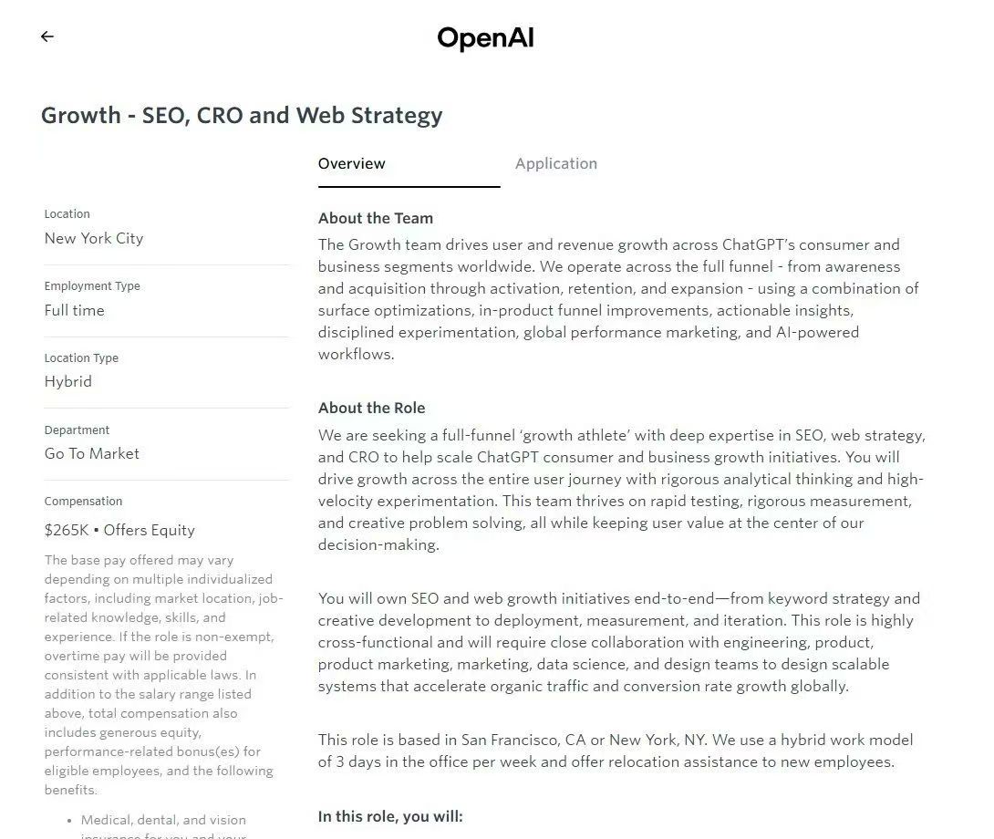 We are seeking a full-funnel ‘growth athlete’ with deep expertise in SEO, web strategy, and CRO to help scale ChatGPT consumer and business growth initiatives. You will drive growth across the entire user journey with rigorous analytical thinking and high-velocity experimentation. This team thrives on rapid testing, rigorous measurement, and creative problem solving, all while keeping user value at the center of our decision-making.